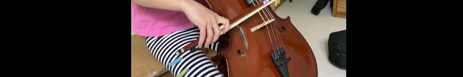 In this video you can see that the student is learning how the bow must be drawn along different lines or what is usually called a "Bow Path". For each string, you'll produce the best sound by keeping the bow perpendicular to the string. This is hard to learn unless you have someone who can guide you because it is not obvious from the viewpoint of the cellist! To understand more about this, go to